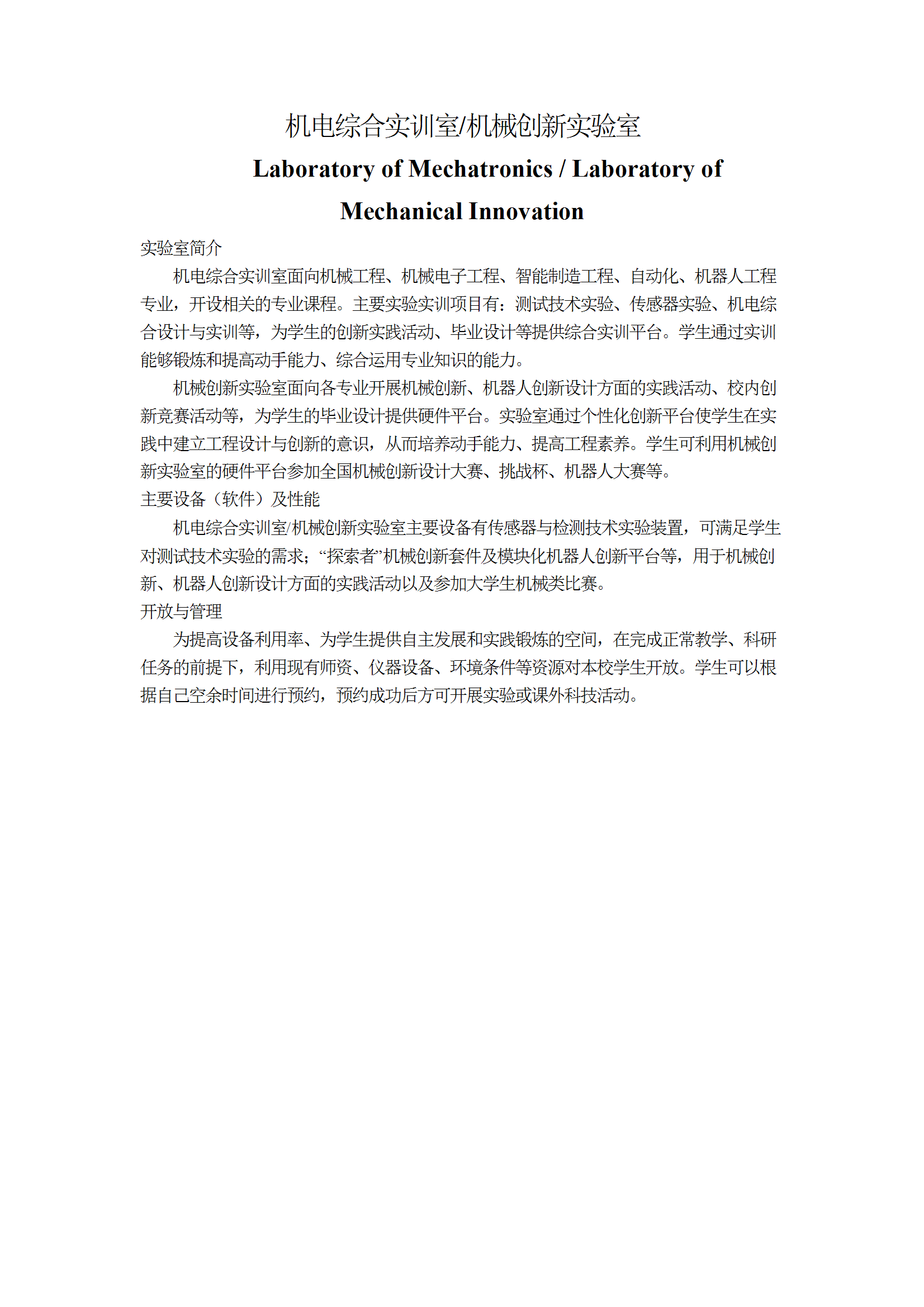 机电综合实训室/机械创新实验室